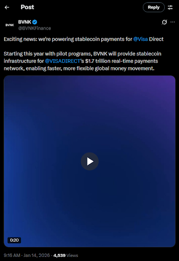 - Visa partnered with BVNK to allow businesses to pre-fund cross-border payments using stablecoins, then send money directly to recipients through Visa Direct.