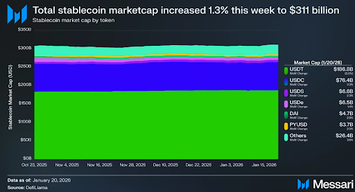 The stablecoin market hit $311 billion in January, showing steady growth despite ongoing debates about how these digital dollars should be regulated.