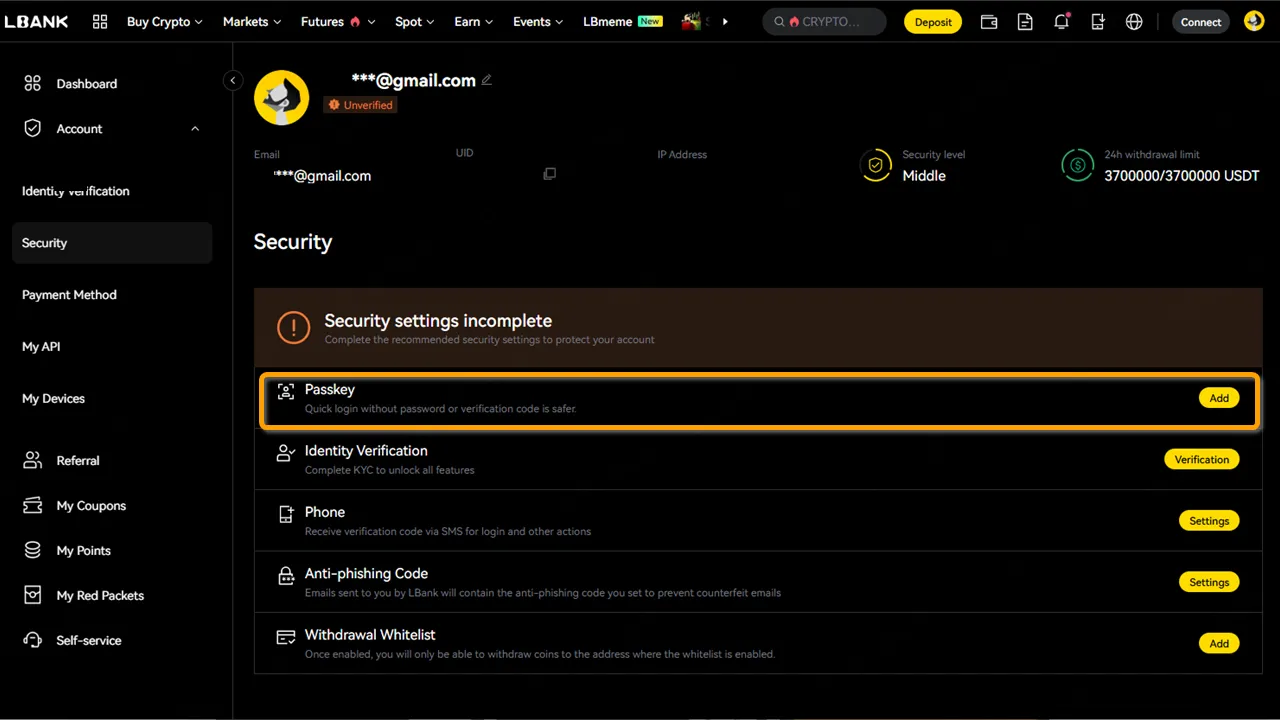 Autentikasi Passkey kini diutamakan untuk skenario penarikan fiat dan penjualan crypto, yang secara efektif mempermudah langkah verifikasi dan meningkatkan efisiensi operasional. (Atur passkey Anda melalui 「Pusat Keamanan」 > 「Passkey」.)