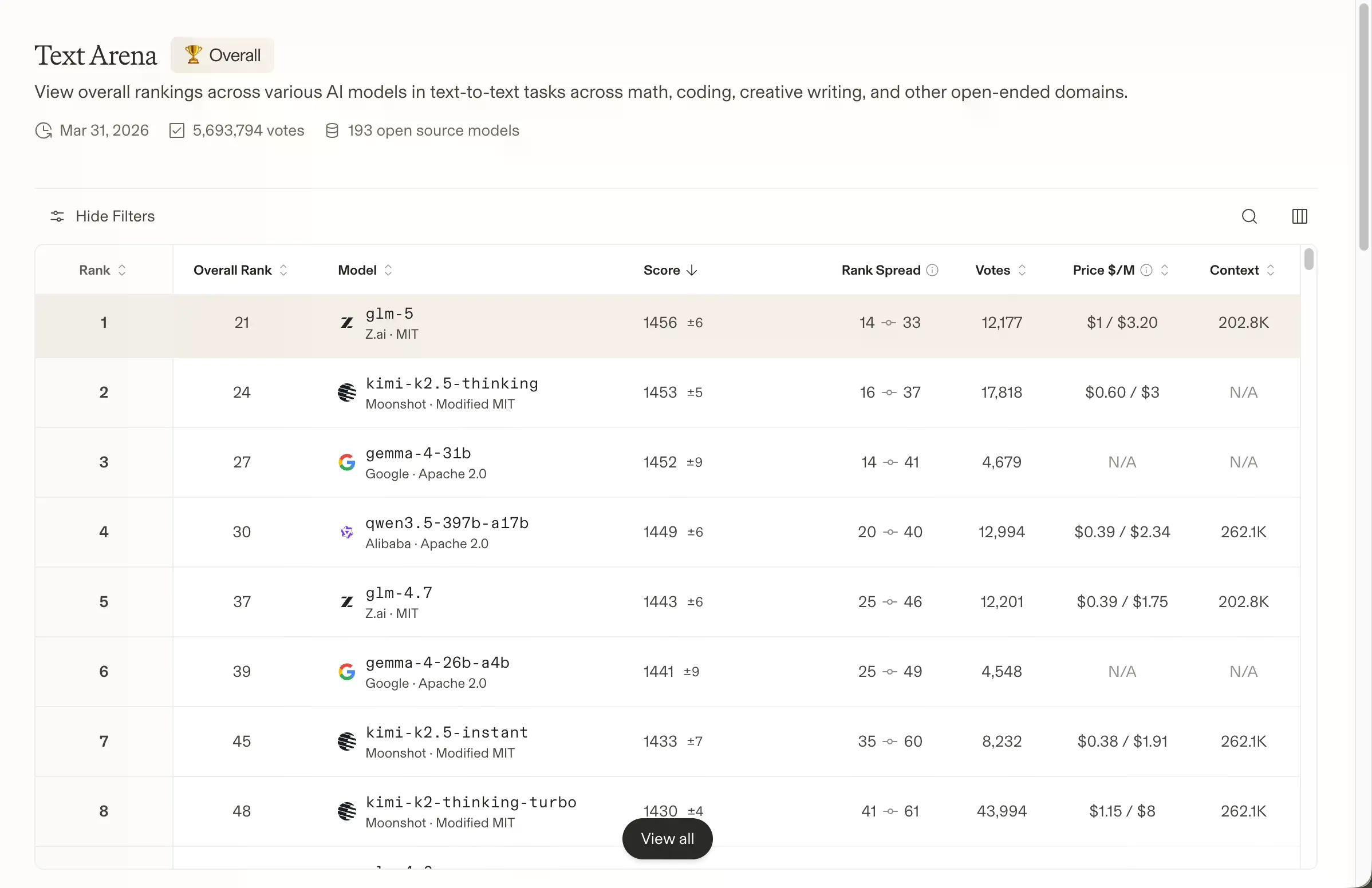 The 31B Dense currently ranks third among all open models on Arena AI's text leaderboard. The 26B MoE sits sixth. Google claims both outcompete models 20 times their size—a claim that holds up, at least against the Arena AI numbers, where Chinese models still hold the top two spots.
