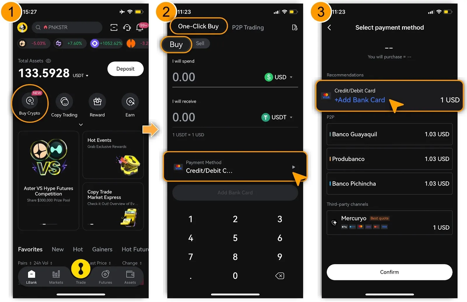 Step 1: Log in to LBank and Access「Buy Crypto」