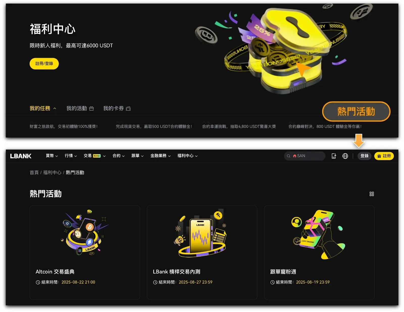 詳情:請參考「現貨賺幣加息券說明」&「LBank現貨賺幣指南」。